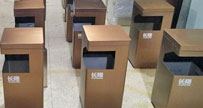 欣方圳在上一篇文章分享了廣州綠地繽紛城購物中心戶外4分類不銹鋼果皮箱,在不銹鋼表面上做白色噴塑工藝,一改不銹鋼本色的單調(diào),增添產(chǎn)品的高度屬性,符合現(xiàn)代商業(yè)中心...