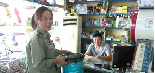為創建衛生整潔、環境優美、秩序良好的幸福家園,保障創城的文明成果,8月29日肥西縣城管局的工作人員上門服務,為轄區沿街的門面房配備了統一的垃圾桶。