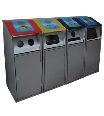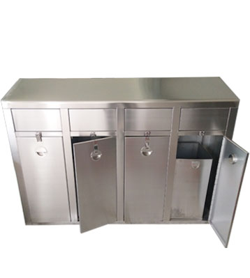 小區(qū)垃圾分類站點(diǎn)四類垃圾分類垃圾桶,不銹鋼無疑是較為理想的材質(zhì)。它戶外防銹蝕效果好,表面金屬光澤高檔美觀,污漬也易清理。不銹鋼分類桶產(chǎn)品款式造型易定制,不受尺寸大小限制,滿足個(gè)性化需求,擺放于惠