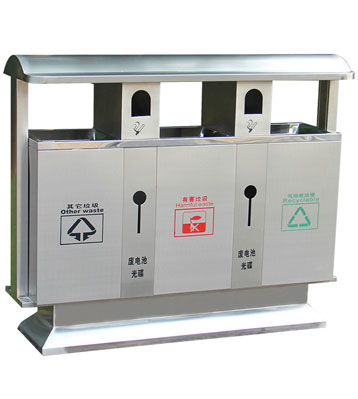 深圳新標(biāo)準(zhǔn)城中村街道社區(qū)不銹鋼五分類垃圾桶由有害垃圾、玻璃、金塑紙(為金屬、塑料、紙張的簡(jiǎn)稱)、廚余垃圾、其他垃圾這5分類不銹鋼垃圾桶組合而成。其中金塑紙、其他垃圾日常產(chǎn)生量較大,所以分類收集容器也