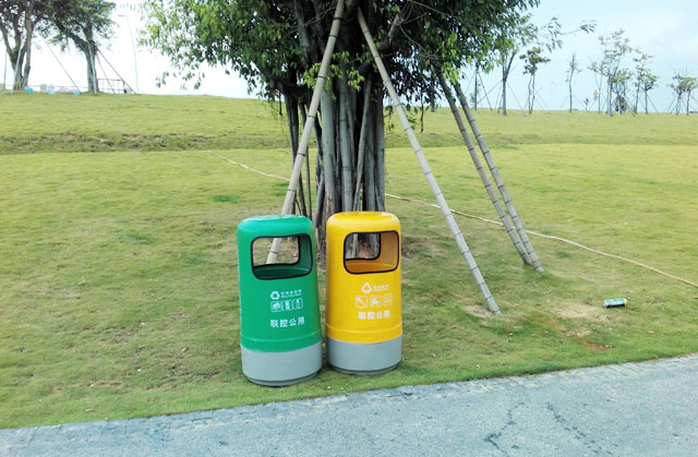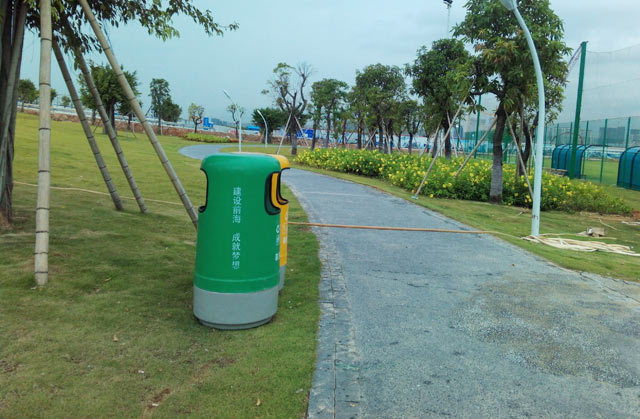 【江西瑞金】欣方圳玻璃鋼分類垃圾桶進駐公園