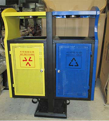 鋼制分類環保垃圾桶均選用優質的冷軋鋼板經噴砂處理去油去銹后,鋼板表面抗紫外線丙稀酸油漆多層噴涂,沖孔通風效果好桶內干爽防銹蝕。
