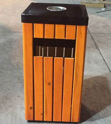 戶外鋼木單桶垃圾桶生產成品擺放圖