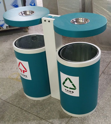戶外鋼制烤漆分類垃圾桶批量生產(chǎn)圖