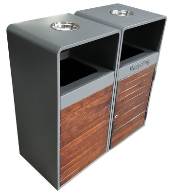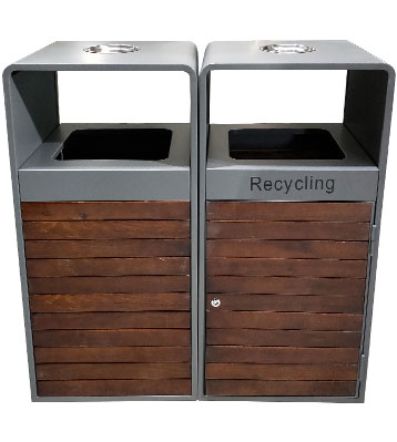 欣方圳戶外鋼木分類果皮箱批量生產(chǎn)圖