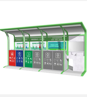 設(shè)有擋雨棚,可配備垃圾箱信息顯示屏、防水照明燈、廣告屏,進(jìn)行地面硬化。對社區(qū)玻金塑紙可回收物,其他垃圾,廚余垃圾,有害垃圾等生活垃圾定時定點投放收集.