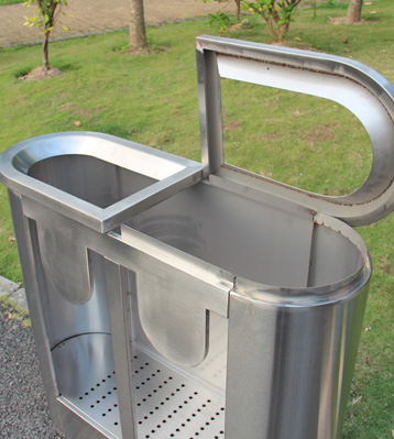 • 產(chǎn)品材質(zhì):地鐵透明防爆分類垃圾箱可采用201#,202#,304#優(yōu)質(zhì)不銹鋼材料模壓成型,堅(jiān)固耐用,不易破損;耐火安全,抗高低溫,適合各種惡劣氣候條件;金屬亮澤 ,高雅美觀,廣泛適用于各種場(chǎng)所;內(nèi)外表面光潔,減少垃圾殘留,易于清潔;配置鍍鋅板內(nèi)桶,便于垃圾清倒;