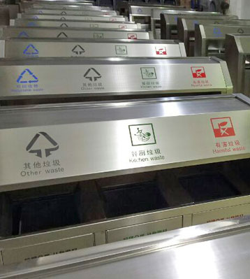 優(yōu)質(zhì)不銹鋼材質(zhì)焊接一體成型,4分類(lèi)桶門(mén)板分色烤漆,與斜切面板絲印新版垃圾分類(lèi)標(biāo),立體多方位提示做好垃圾精準(zhǔn)投放,精細(xì)打磨無(wú)利口。