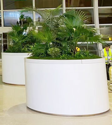 深圳機場衛(wèi)星廳不銹鋼景觀花箱現(xiàn)場安裝圖